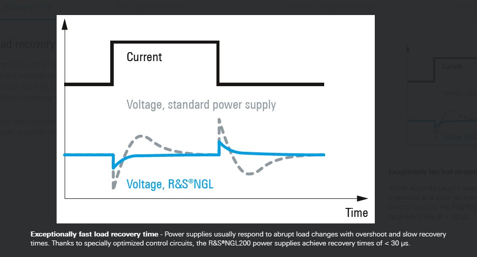 The R&S®NGM power supplies have a circuit design that allows the user to determine how the power supply regulates load changes.